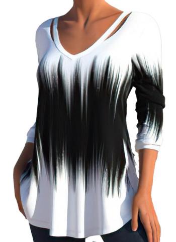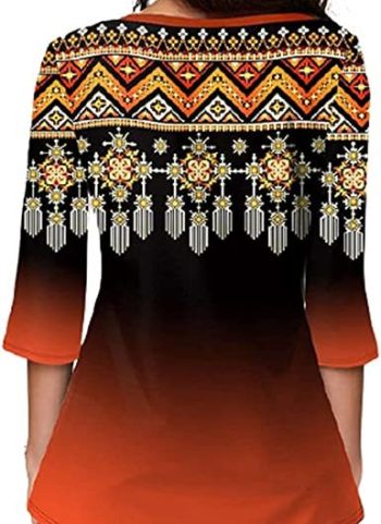 Classic Autumn Blouse Loose Hem Dressing Up Anti Pilling Gradient Print Lady Tunic Blouse