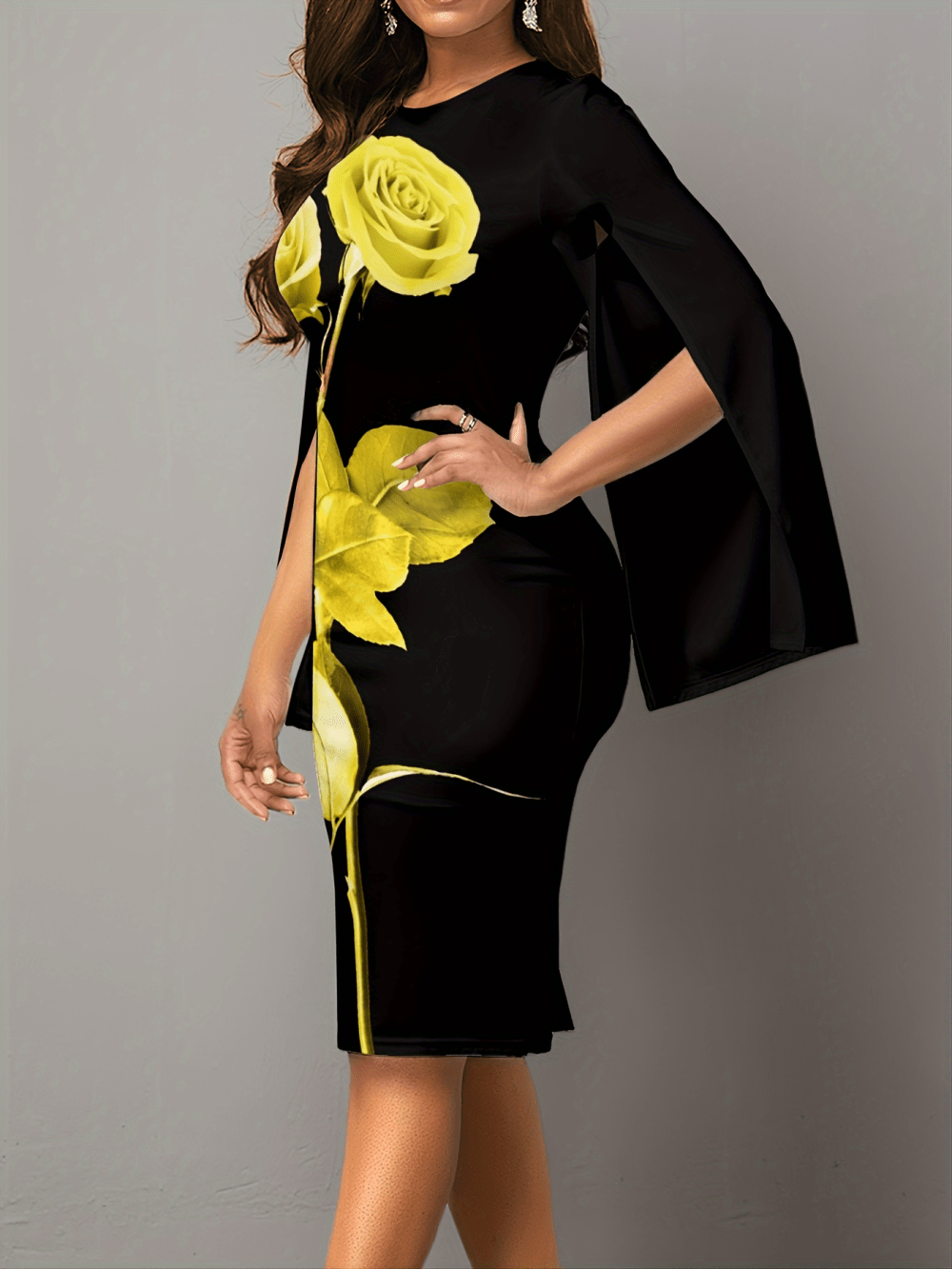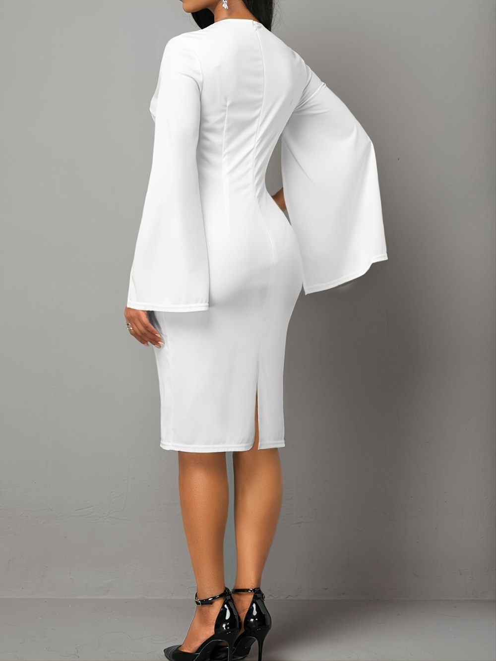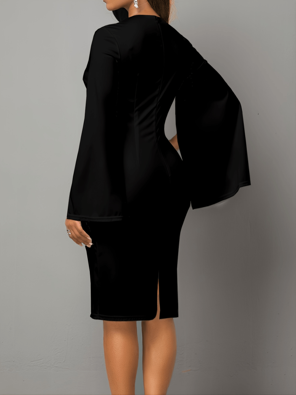 The standout feature of this dress is the split sleeve design, which introduces a modern and stylish twist. The slit adds a hint of allure, enhancing the dress's overall elegance. Crafted from high-quality materials, this fitted dress hugs your curves in all the right places, creating a flattering silhouette that exudes confidence.